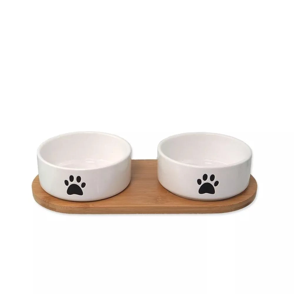 Šie dubenėliai pagaminti atsižvelgiant į Jūsų augintinio gerovę ir Jūsų poreikius. Balti keraminiai dubenėliai yra ne tik lengvai valomi, bet ir saugūs naudoti maistui, nesukeldami alergijų ar reakcijų. Jie puikiai tinka tiek sausam, tiek šlapiam maistui. Nepaprastai funkcionalus bambuko padėklas ne tik stabiliai laiko dubenėlius, bet ir apsaugo Jūsų grindis nuo maisto ar vandens purslų, taip palaikant švarą aplink maitinimo vietą. Jo natūrali išvaizda suteikia subtilaus jaukumo bet kuriai erdvei.