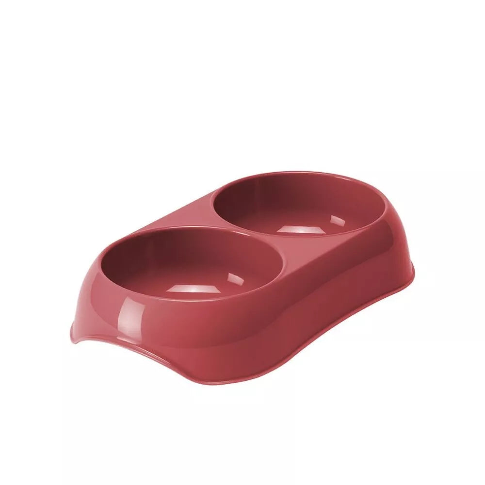 Ypatingo dizaino dvigubas plastikinis dubenėlis katėms ar mažų ir vidutinių veislių šunims. Dubenėlio apačia padengta neslystančia danga, kuri suteikia dubenėliui stabilumo, jis neslysta. Talpa - 2 x 200 ml Išmatavimai - 23 x 13 cm Aukštis - 4,1 cm Prekių nuotraukos yra iliustracinio pobūdžio. Prekės aprašymas yra bendro pobūdžio ir ne visos savybės gali būti paminėtos. Ant produkto pakuotės nurodoma informacija yra detalesnė. Rekomenduojame vadovautis informacija esančia ant prekės pakuotės.