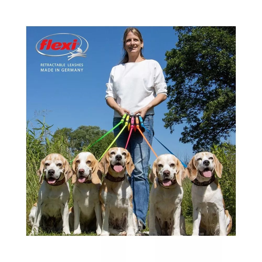 Flexi New Neon M automatinis pavadys, 5 m, juostelė, žalias