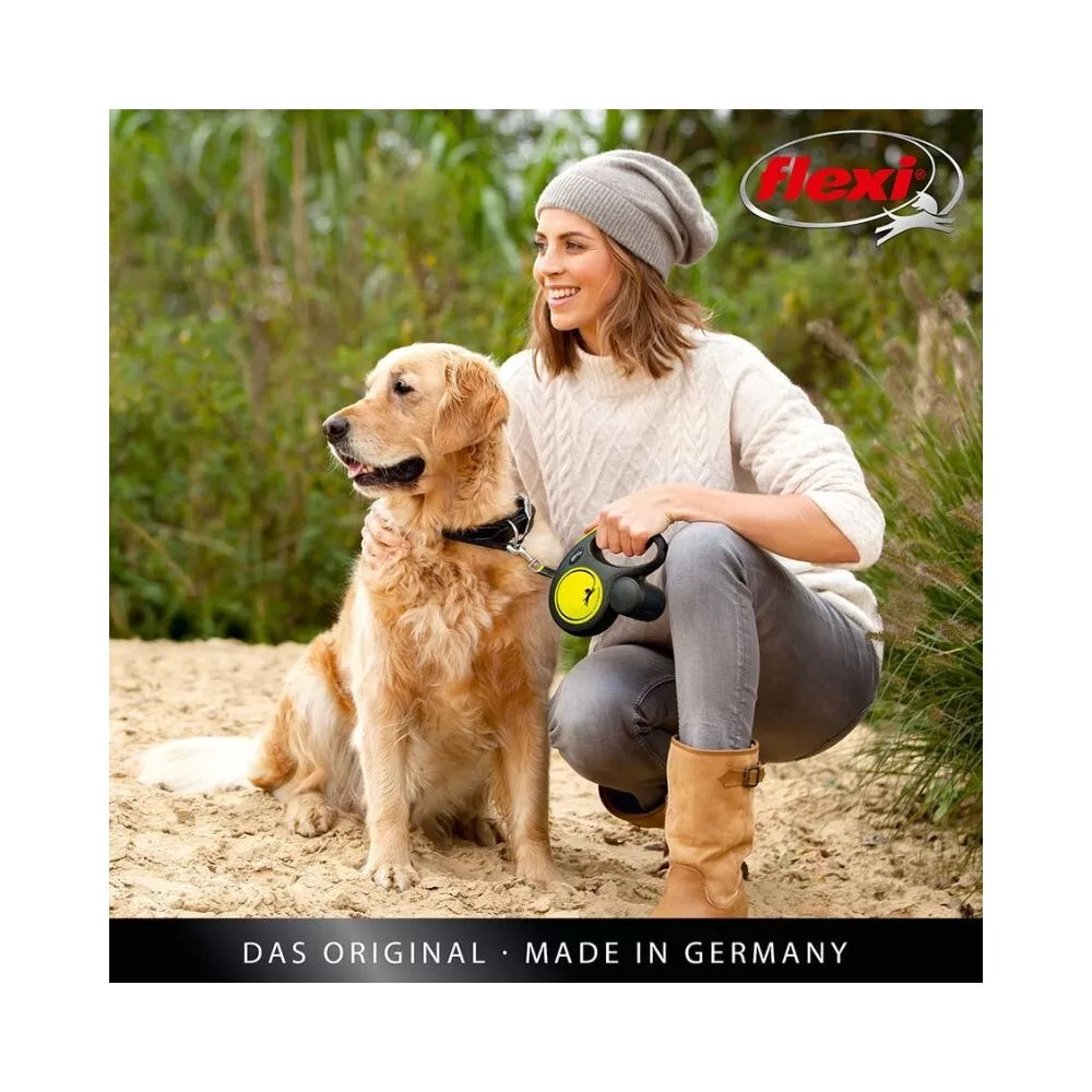 Flexi New Neon M automatinis pavadys, 5 m, virvutė