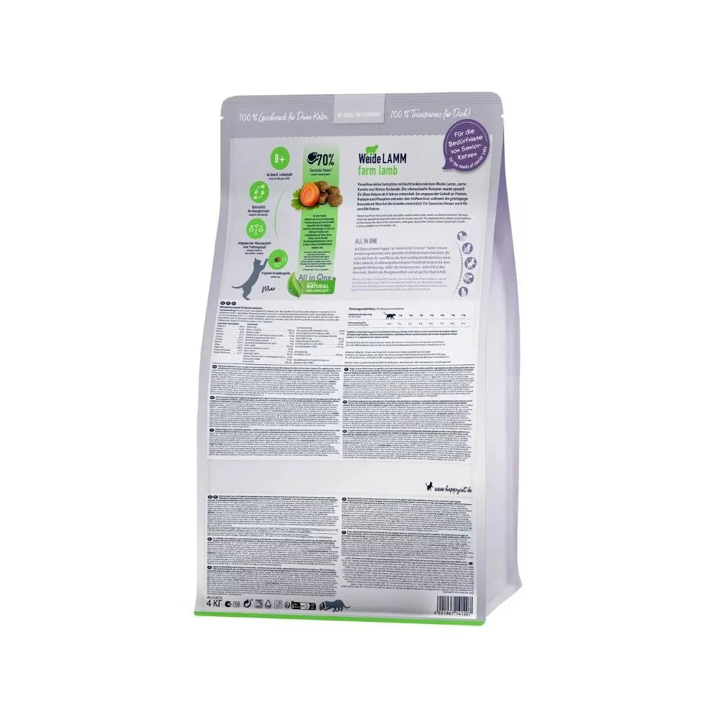 Palepinkite savo katę maistu su lengvai virškinama ganyklose auginta ėriena, morkomis ir kalendromis. Skanus receptas specialiai sukurtas vyresnėms katėms nuo 8 metų. Pritaikytas baltymų, natrio ir fosforo kiekis mažina medžiagų apykaitos įtampą, o Naujosios Zelandijos midijos padeda palaikyti sveikus sąnarius.