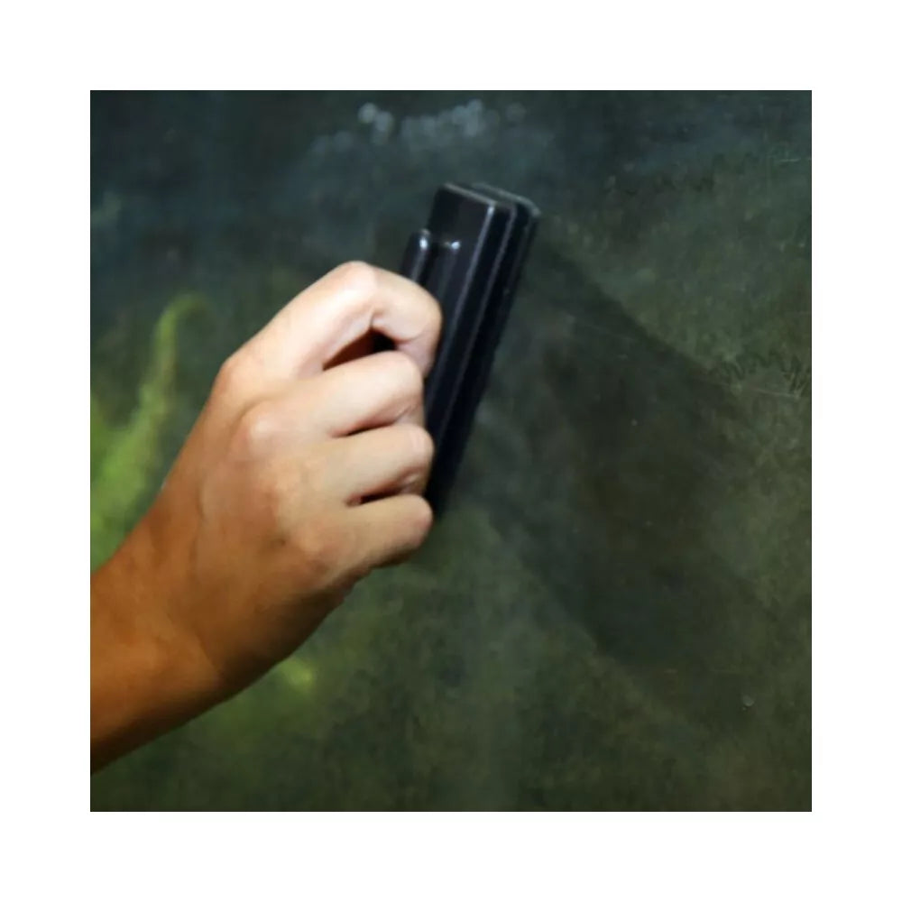 JBL AlgenMagnet M veikia dėka dviejų stiprių magnetų, kurie yra sujungti per akvariumo stiklą. Vieną magnetinę dalį patogiai valdysite akvariumo viduje, o kitą – išorėje. Judindami išorinę dalį sukamaisiais judesiais, Jūs efektyviai valote vidinę akvariumo sienelę. Šis metodas yra ypač patogus ir saugus Jūsų rankoms, nes jos lieka sausos. Valiklis specialiai sukurtas stiklams, kurių storis siekia iki 10 mm, užtikrinant tinkamą sukibimą ir efektyvumą daugumoje populiarių akvariumų. Dėl kompaktiškumo ir paprasto naudojimo jis tampa nepakeičiama priemone kiekvienam akvariumistui, siekiančiam nepriekaištingos švaros.