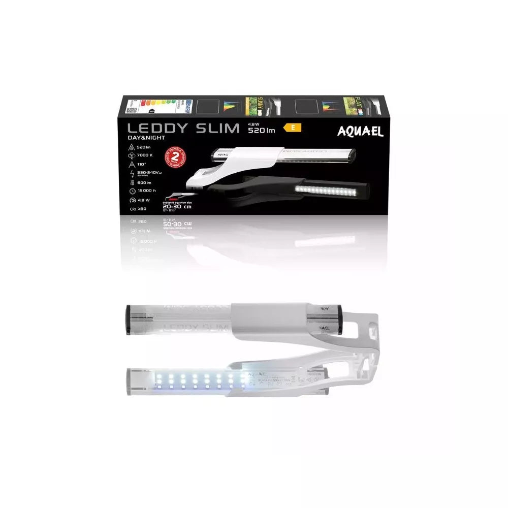 Atraskite modernaus akvariumo grožį su LEDDY SLIM SUNNY DAY&NIGHT šviestuvu. Sukurtas specialiai atviriems akvariumams, jis ne tik suteikia puikų apšvietimą, bet ir praturtina jūsų namų mikroklimatą, drėkindamas orą ir palengvindamas kvėpavimą. Elegantiškas, plokščias dizainas ir baltos spalvos korpusas lengvai dera prie bet kokio interjero, o integruoti, kruopščiai atrinkti šviesos diodai užtikrina optimalias sąlygas akvariumo gyventojams ir sukuria unikalų vizualinį efektą.