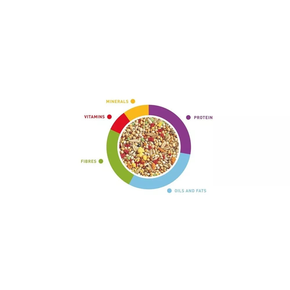 Tai rūpestingai parinktų grūdų ir sėklų mišinys, praturtintas vaisais, kepinukais, smulkintomis kriauklėmis, vitaminais ir mikroelementais.