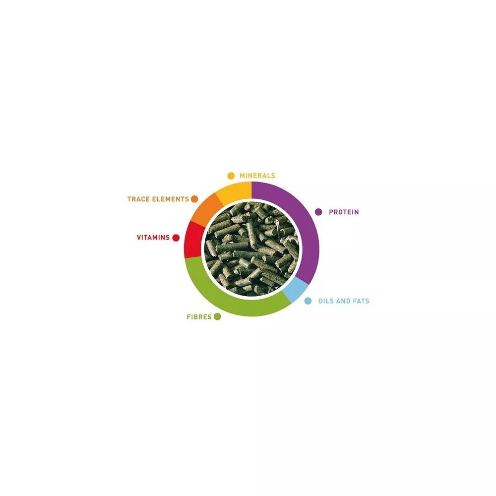 Visavertis granuliuotas maistas jauniems dekoratyviniams triušiams. Tai idealus pašaras pirmus keturis - penkis jų gyvenimo mėnesius. Taip pat tinkamas ir suaugusiems dekoratyviniams triušiams kasdienio raciono paįvairinimui. Sudėtis: augaliniai produktai (liucerna 26%), augaliniai baltymų ekstraktai, mineralai. Priedai/1 kg: maistiniai priedai: vitaminas A 18750 TV, vitaminas D3 1500 TV, vitaminas E 65 mg, geležis (3b103) 105 mg, cinkas (3b605) 150 mg, manganas (3b503) 150 mg, jodas (3b202) 10 mg, selenas (3b801) 0,5 mg. Kokcidiostatikas: diklazurilas 1 mg. Šėrimo rekomendacijos: nuo trečios gyvenimo savaitės įberkite pašaro į dubenėlį ir leiskite augintiniui laisvai ėsti. Dar po kelių savaičių galima pradėti duoti šieną. Pasirūpinkite, kad kasdien būtų šviežio vandens. Laikyti vėsioje, sausoje vietoje. Geriausias iki/Partijos Nr./Grynasis kiekis/Gamintojas: žr. ant pakuotės. Prekių nuotraukos yra iliustracinio pobūdžio. Prekės aprašymas yra bendro pobūdžio ir ne visos savybės gali būti paminėtos. Ant produkto pakuotės nurodoma informacija yra detalesnė. Rekomenduojame vadovautis informacija esančia ant prekės pakuotės.