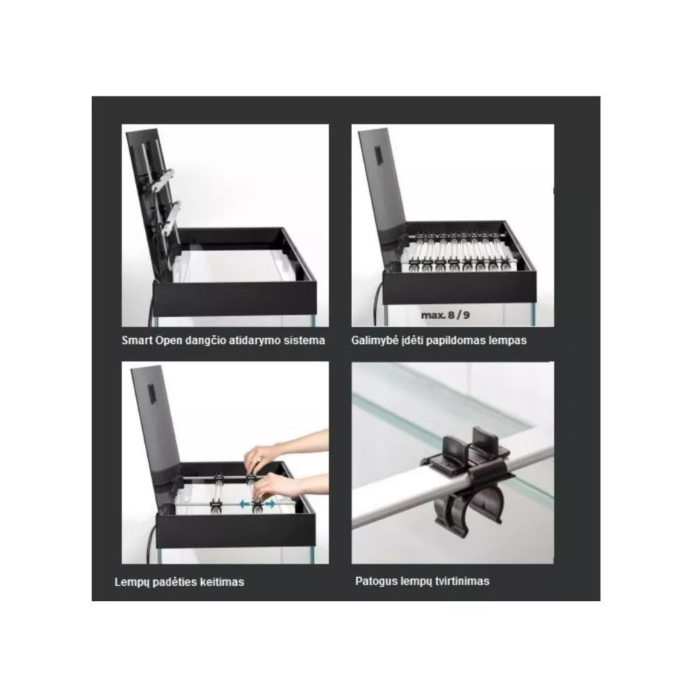 Opti Set akvariumo savybės: Itin skaidrus - Akvariumas pagamintas iš opti stiklo (priekinis ir šoniniai stiklai)- Poliruoti kraštai, bespalvis silikonas „Leddy Tube“ dienos ir nakties lempos - Trys šviesos režimai DAY / DAYBREAK / NIGHT- Mažas energijos suvartojimas - moderni LED technologija Apšvietimą galima išplėsti iki 9 „Leddy Tube“ modulių Galimybė pakeisti lempų padėtį Patogi ir lengva prieiga prie akvariumo vidaus - „Smart Open“ dangčio atidarymo sistema Akvariumo dangčio galinėje dalyje yra angos, skirtos laidams ir žarnoms Modernaus dizaino Patogus žuvų šėrimas Galima įsigyti specialią „Opti Set“ spintelę su reguliuojamomis kojelėmis Kartu rekomenduojama įsigyti kilimėlį po akvariumu Opti Set 240 Akvariumo talpa (L) 240 Matmenys (cm) 121x41x56 Apšvietimas 2x17 W Stiklo storis (mm) 8 Stiklo tipas opti Savybės: Partijos nr.: žr. ant pakuotės.CE sertifikatas2 metų garantija Gamintojas: Aquael PRISTATYMAS: Nemokamai atsiimkite Kaune arba Vilniuje (Akvazoo parduotuvėse) Pristatymas į namus (be užsakomųjų krovos darbų) - 12,90€ Pristatymo mokestis bus priskaičiuotas automatiškai, įsidėjus prekę (akvariumą ar kitas didelių gabaritų prekes) į krepšelį. Užsakomieji krovos darbai - 15€ Jei reikalingi krovos darbai (prekės atnešimas iki durų), prašome parašyti pastabose arba susisiekti +37064053080, shop@akvazoo.lt Prekių nuotraukos yra iliustracinio pobūdžio. Prekės aprašymas yra bendro pobūdžio ir ne visos savybės gali būti paminėtos. Ant produkto pakuotės nurodoma informacija yra detalesnė. Rekomenduojame vadovautis informacija esančia ant prekės pakuotės.