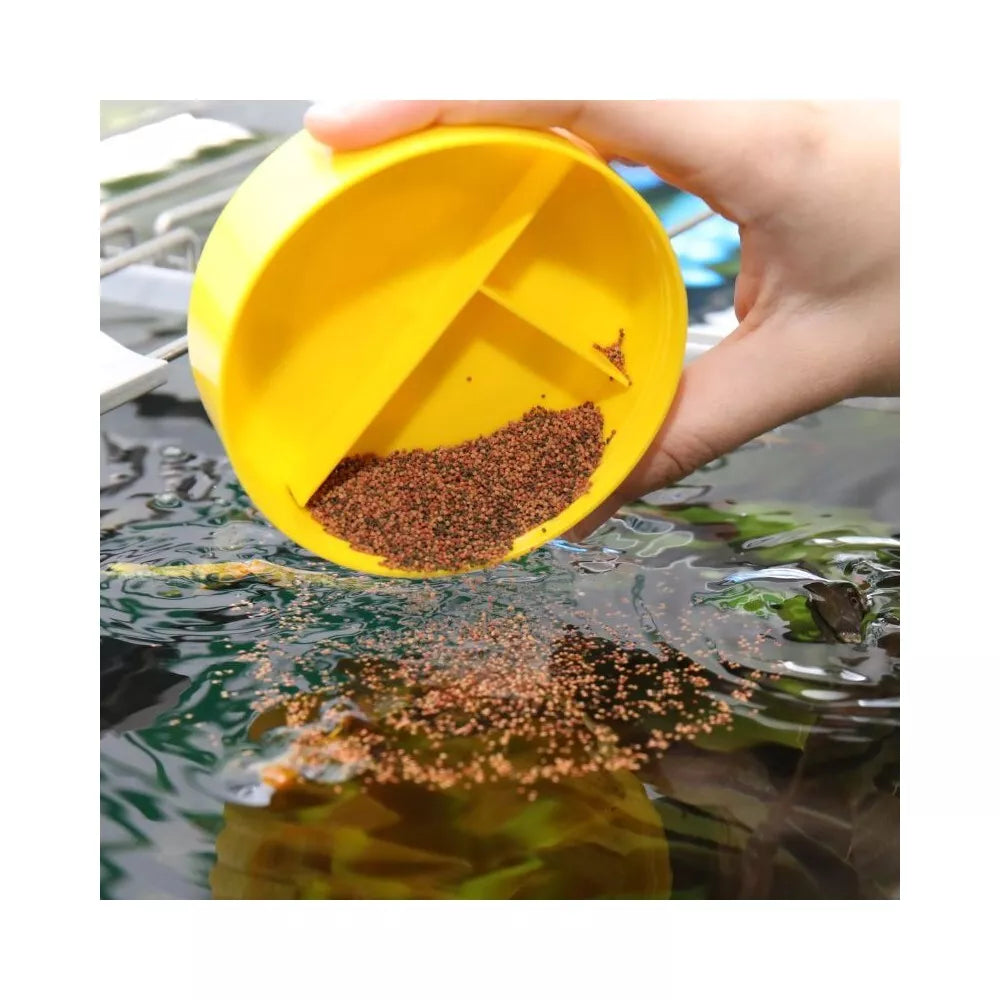 Šėrimo rekomendacijos: 1-2 kartus per dieną nedidelėmis porcijomis, kurias žuvys suėstų per keletą minučių.