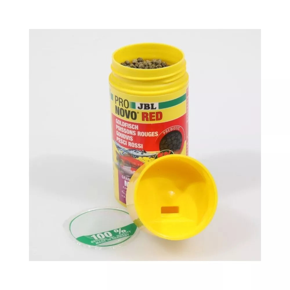 JBL ProNovo Red Grano maistas akvariumo žuvims. Specialios maistinės skaidulos maiste aprūpina naudingas žarnyno bakterijas maistu sveikam virškinimui. Natūralios žaliavos be dirbtinių priedų natūraliai mitybai ir sveikoms akvariumo žuvims. Dėl aukštos kokybės žaliavų, tokių kaip lašiša ir krevetės puikiai tinka net ir išrankioms auksinėms žuvelėms. Su labai aukštos kokybės natūraliu krilių ir spirulinos astaksantinu, kuris gali padėti užtikrinti tobulą žuvų spalvą. Sandari, orui ir šviesai nepralaidi, perdirbama pakuotė su dozatoriumi Visavertis pašaras auksinėms ir karpinių šeimos žuvims. Šėrimo rekomendacijos: 1-2 kartus per dieną nedidelėmis porcijomis, kurias žuvys suėstų per keletą minučių. Sudėtis: kviečių miltai, sojų pupelių miltai, kukurūzų miltai, ryžių miltai, lašišų miltai, kevečių miltai, spirulina 5%, mielių esktraktas. Priedai: antioksidantai. Analitinės sudedamosios dalys: žali baltymai 30%, žali riebalai 6%, žalia ląsteliena 3%, žali pelenai 8%. Priedai/1 kg: vitaminas A 25000 TV, vitaminas D3 3000 TV, vitaminas E 300 mg, vitaminas C 200 mg. Gamintojas/Grynasis kiekis/Partijos nr./Geriausias iki: žr. ant pakuotės. Prekių nuotraukos yra iliustracinio pobūdžio. Prekės aprašymas yra bendro pobūdžio ir ne visos savybės gali būti paminėtos. Ant produkto pakuotės nurodoma informacija yra detalesnė. Rekomenduojame vadovautis informacija esančia ant prekės pakuotės.