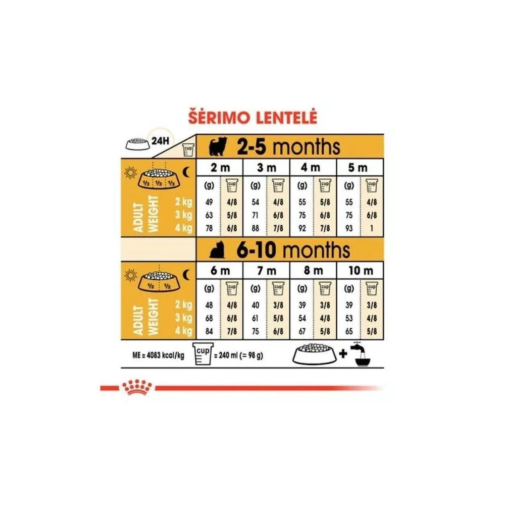 SUDĖTIS: Dehidratuoti paukštienos baltymai, ryžiai, kukurūzų miltai, gyvulinės kilmės riebalai, augalinių baltymų izoliatas*, cukrinių runkelių minkštimas, hidrolizuoti gyvulinės kilmės baltymai, mineralai, sojų aliejus, žuvų taukai, mielės, fruktooligo- sacharidai, mielių ekstraktas (manan-oligo-sacharidų šaltinis), agurklių aliejus (0,1%), medetkų ekstraktas (liuteino šaltinis). *L.I.P. itin lengvai įsisavinami baltymai