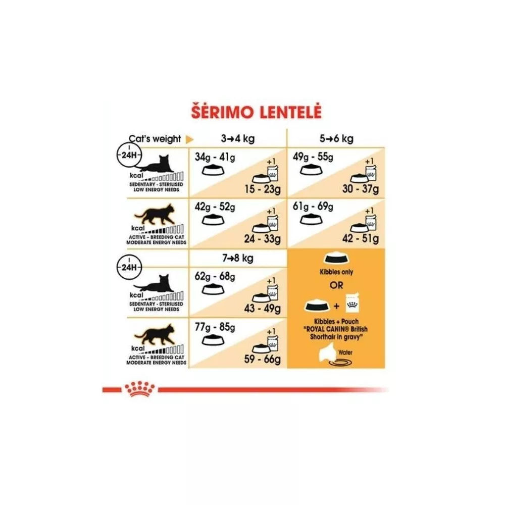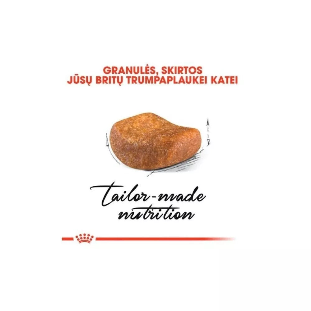 SPECIALIAI BRITŲ TRUMPAPLAUKIŲ VEISLĖS KAČIŲ ŽANDIKAULIUI. Lenktos formos granulė, specialiai pritaikyta Britų trumpaplaukių veislės kačių žandikauliui, skatina kramtymą ir užtikrina gerą burnos higieną.