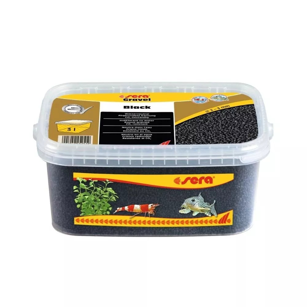 "Sera Gravel Black" neutralus vandens atžvilgiu, t. y. neturi įtakos vandens parametrams ir nenuspalvina vandens. Dėl 2-3 mm dydžio frakcijos jame puikiai auga augalai. Dėl apvalios formos spalvotas gruntas taip pat tinka laikyti į dugną orientuotas žuvis, pavyzdžiui, šamus. "Sera Gravel Black" gruntas yra įvertintas nepriklausomo instituto pagal DIN 38415-6 / EN ISO 15088 ir įrodyta, kad jame nėra teršalų. Todėl jis taip pat tinka jautriems gyvūnams laikyti ir veisti. Prieš naudodami nuplaukite po tekančiu vandeniu, kad pašalintumėte dulkių nešvarumus. Prekių nuotraukos yra iliustracinio pobūdžio. Prekės aprašymas yra bendro pobūdžio ir ne visos savybės gali būti paminėtos. Ant produkto pakuotės nurodoma informacija yra detalesnė. Rekomenduojame vadovautis informacija esančia ant prekės pakuotės.