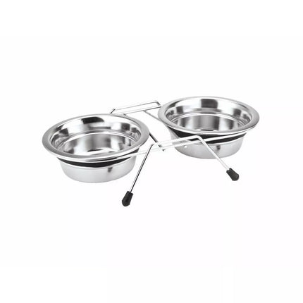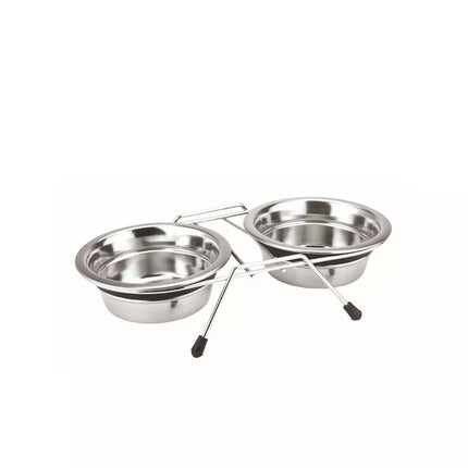 Gyvūnų dvigubas dubenėlis skirtas maistui ir vandeniui, iš nerūdijančio plieno, atsparus įbrėžimams. Dubenėliai lengvai valomi. Dubenėlių apačia su plačia gumine juosta, dėl to augintiniui ėdant jie nebarška. Stovelio neslystančios kojelės užtikrina stabilumą ėdant. Prekių nuotraukos yra iliustracinio pobūdžio. Prekės aprašymas yra bendro pobūdžio ir ne visos savybės gali būti paminėtos. Ant produkto pakuotės nurodoma informacija yra detalesnė. Rekomenduojame vadovautis informacija esančia ant prekės pakuotės.