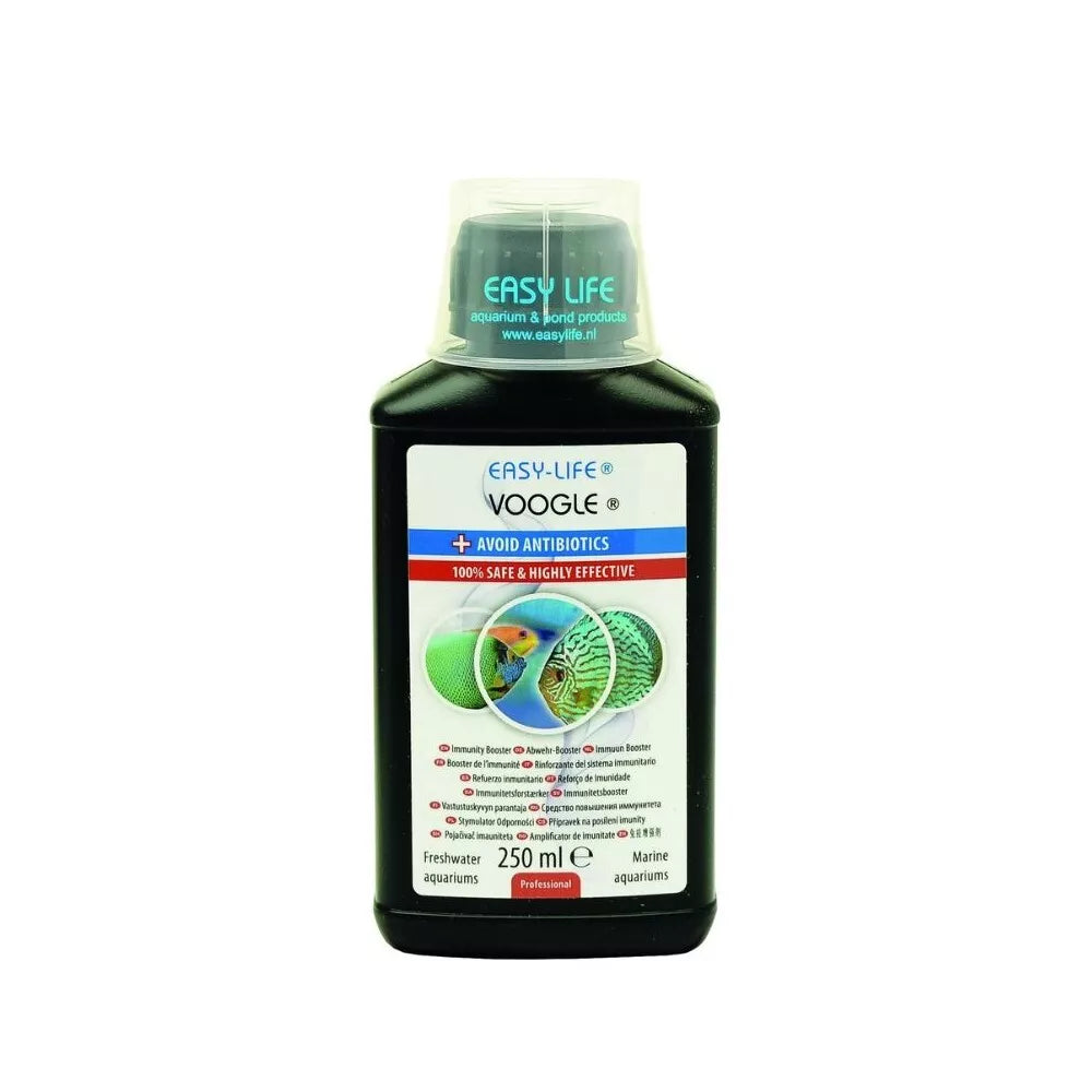 Voogle yra esminis jūsų akvariumo priežiūros įrankis, skirtas palaikyti stiprią ir sveiką žuvų imuninę sistemą. Kas savaitę ar esant būtinybei naudojant Voogle, jūsų žuvys bus geriau apsaugotos nuo aplinkos veiksnių, kurie gali sukelti stresą ir padaryti jas jautresnes ligoms. Ši priemonė padeda sumažinti patogenų sukeliamą riziką, stiprina gleivinę, odą, žiaunas ir pelekus, leisdama žuvims gyventi aktyvų ir sveiką gyvenimą. Tai greitas sprendimas palaikyti optimalią žuvų savijautą ir sveikatą.