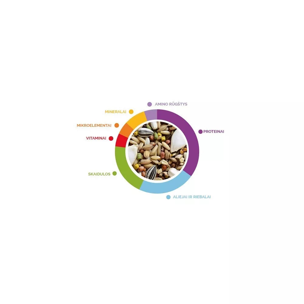 Subalansuotas lesalas didžiosioms papūgoms (žako, aroms, amazonėms). Sukurtas bendradarbiaujant su mokslininkais. Subalansuotas sėklų ir kitų natūralių ingredientų mišinys su ekstruduotomis ProBalance granulėmis (15%), aprūpinančiomis paukščius mikroelementais, būtinais pilnavertei mitybai.