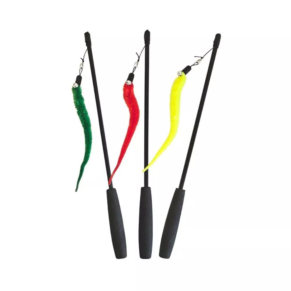 Žaislas katėms meškerė su pliušiniu kirminu, 41+45 cm