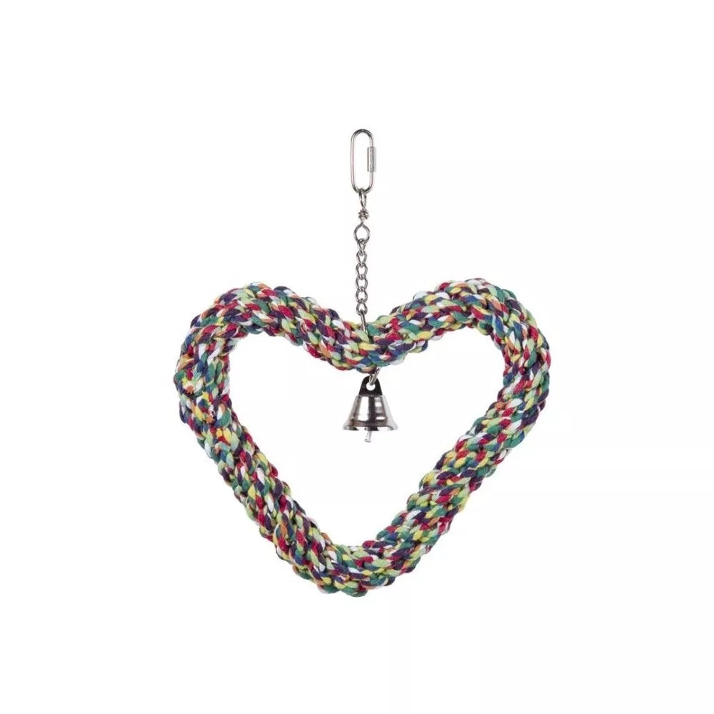 Žaislas paukščiams virvinė širdelė su varpeliu, 27x21 cm