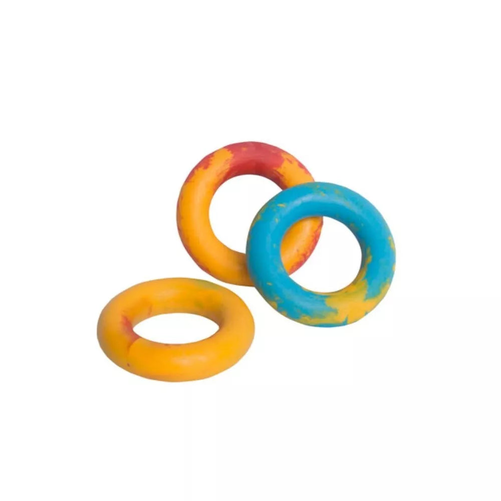 Bet koks žaislas visada pradžiugins jūsų keturkojį draugą. Žaislai šunims yra specialiai sukurti jūsų draugui. Šių žaislų forma, dydis, dizainas, skleidžiamas garsas, spalva ar medžiaga yra parinkti taip, kad sudomintų augintinį. Žaislai šunims skirti ne tik žaisti bet ir treniruotėms ar dresūrai. Šis, kietos gumos žiedas puikiai tiks žaidimams tiek namuose, tiek lauke. Skirtas mėtymui, graužimui, tampymui. Skirta mažų ir vidutinių veislių šunims. Svarbu: žaislo spalva parenkama atsitiktiniu būdu. Dėmesio: žaislas netinkamas vaikams! Nenaudoti pažeisto žaislo. Nepalikite gyvūno su žaislu be priežiūros. Prekių nuotraukos yra iliustracinio pobūdžio. Prekės aprašymas yra bendro pobūdžio ir ne visos savybės gali būti paminėtos. Ant produkto pakuotės nurodoma informacija yra detalesnė. Rekomenduojame vadovautis informacija esančia ant prekės pakuotės.